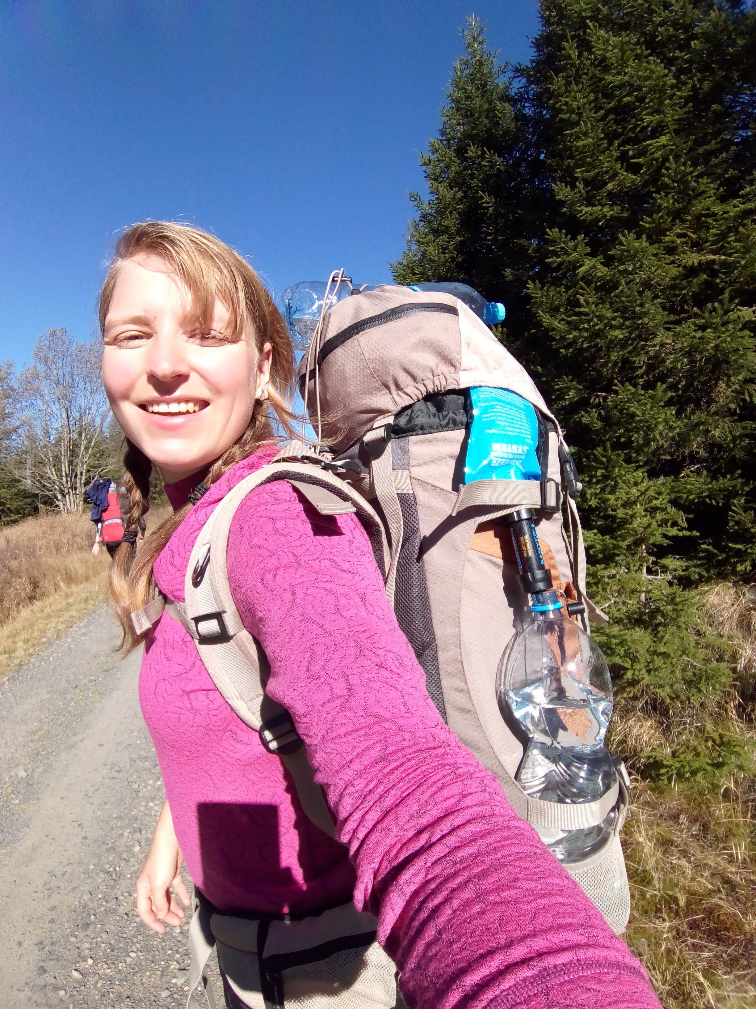 Od druhého dne jsme na cestě potkávali stále méně lidí a užívali si klidnou přírodu. Další část cesty vedla přes pramen Vltavy, kde jsme nabraly čerstvou vodu, přes Modravu, kde jsme daly teplý oběd až k Poledníku (nejvyššímu bodu na naší trase – 1 315 m.n.m. ), odkud byl skvělý výhled do okolních údolí.