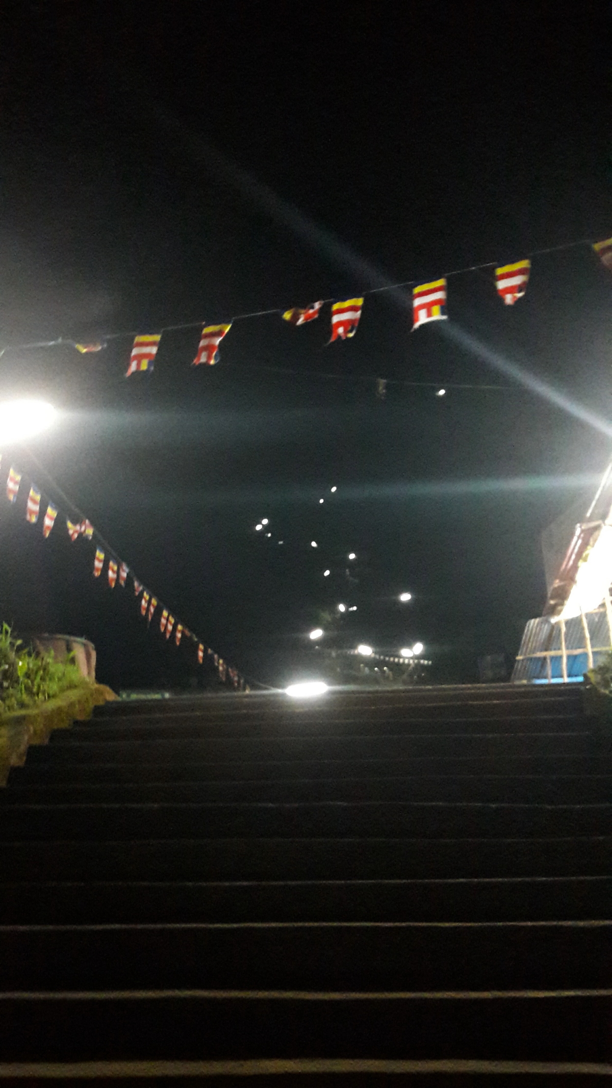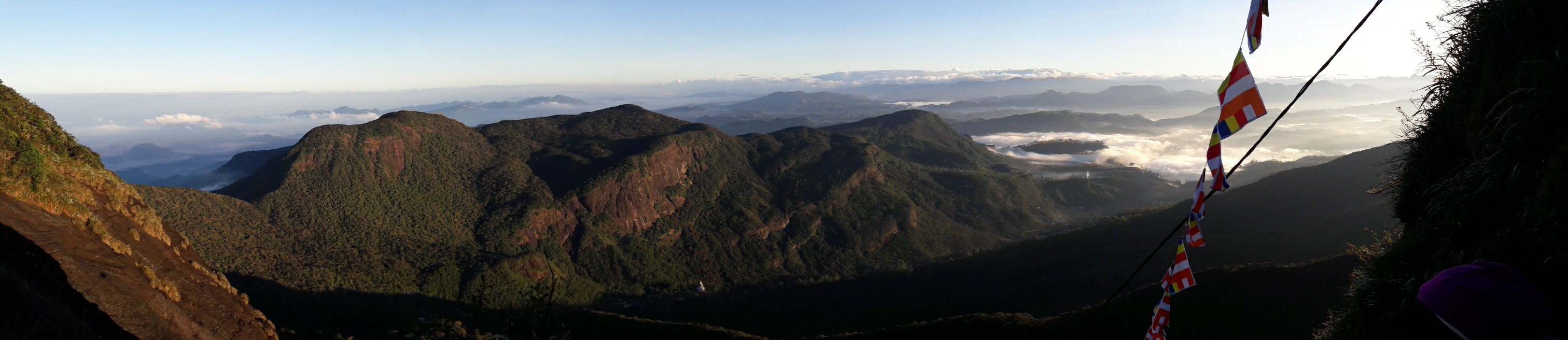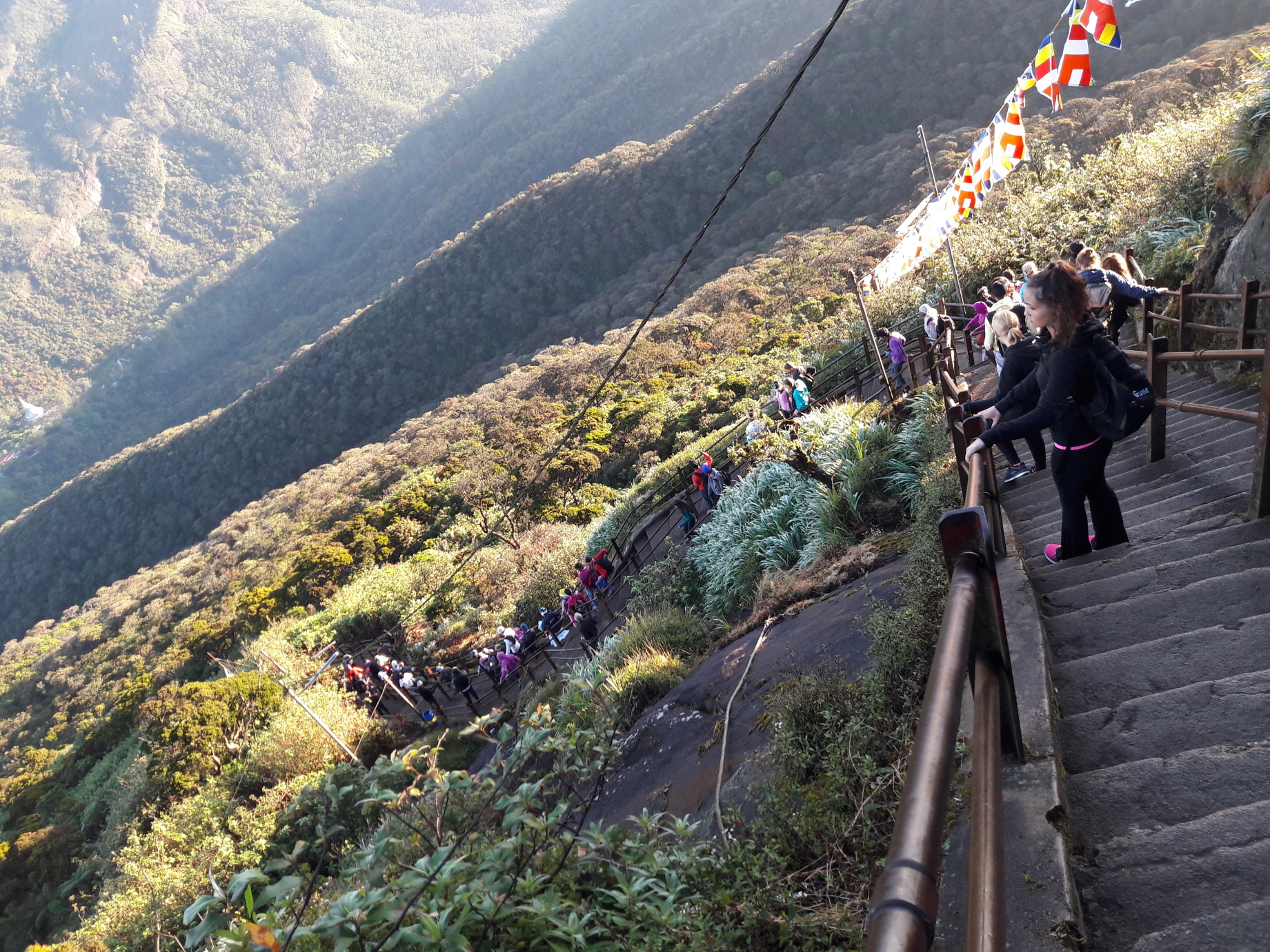 Na Adamovu horu se vychází brzy ráno (ještě před rozedněním). Na horu se dá dostat dvěma různými způsoby. Buď to z východu (Dallhousie), anebo ze západu (Ratnapura). My šli z východního směru. Za svitu malých lamp kolem cesty stoupáme s pár dalšími lidmi do nekonečných schodů. Po 2 hodinách zvládáme zdolat vrchol a zabíráme si místo ve 2. řadě na východ sluníčka. To vychází po nějaké hodince čekání, kdy už nám začíná být celkem zima. Východ sluníčka je v sezóně doprovázený dramatickým bubnováním místních mnichů.